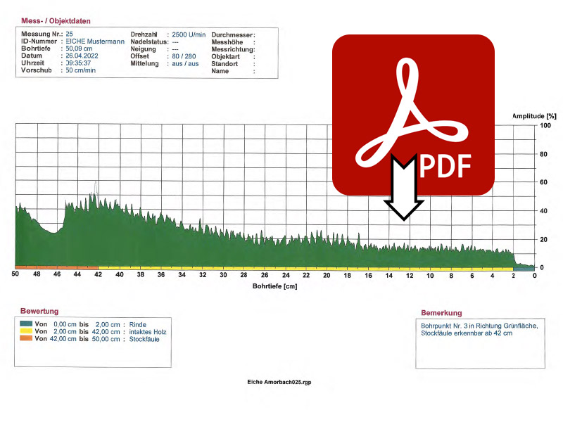 Wir führen auf Wunsch eine eingehende Untersuchung mittels Resistographen (Bohrwiderstandsmessung) durch. Hierbei ermitteln wir den genauen Holzzustand, um optimale Maßnahmen empfehlen und ergreifen zu können.